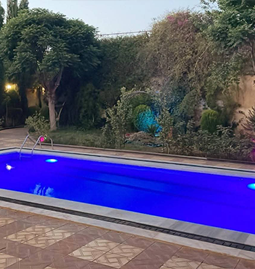 مسبح فاخر بمساحة 10×5 متر مع تعقيم وتصفية كاملة