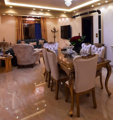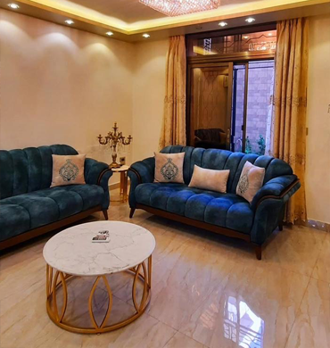 صالون كبير مفتوح يجمع الضيافة والجلوس بانسيابية