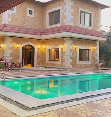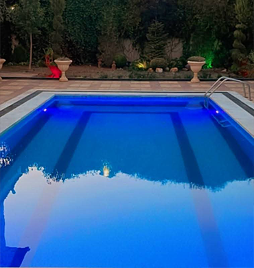 مسبح فاخر بمساحة 10×5 متر مع تعقيم وتصفية كاملة